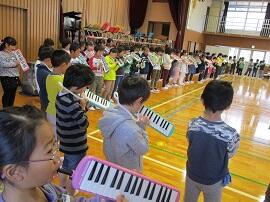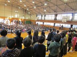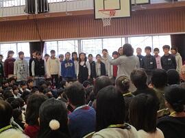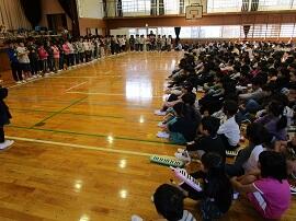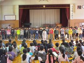 学年の発表の後には、全校で「ふるさと」を合唱しました。