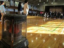 今朝は気温が下がったため、体育館ではストーブをつけました。