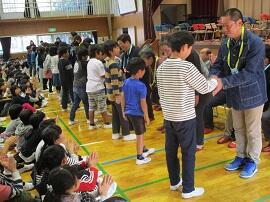 最後に代表児童がお礼の言葉を述べ、花束をお渡ししました。
