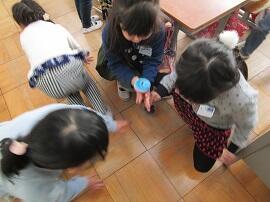 玉入れの球をフラフープの輪をめがけて投げ、点数を競います。