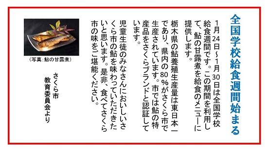 【 1月29日(火) おいしく給食・鮎の甘露煮 】