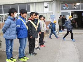 2年生から始まった月曜朝のあいさつ運動も、5年生までまわりました。