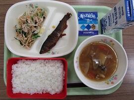 今日は「地産地消献立」で、鮎の甘露煮が出ました。