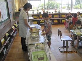 担任を持っていない職員が計画的に教室に行って子どもたちとの会食を行う「交流給食」の2回目が行われました。
