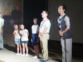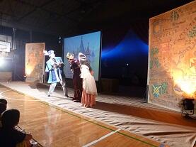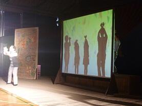 本編の「長靴をはいたねこ」の公演では、美しい影絵と、俳優さんのいきいきとした演技が組み合わせられたユニークで楽しいステージで、全員がひきこまれるようでした。