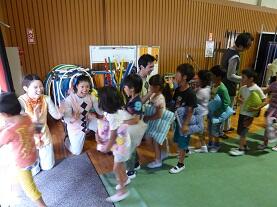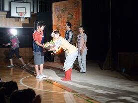 終了後、体育館の出口では劇団員の皆さんが、全校児童を見送ってくださいました。「劇団かかし座」の皆さん、熱演をありがとうございました。