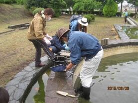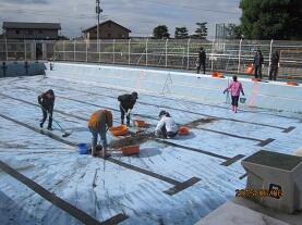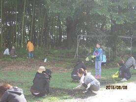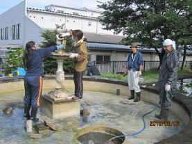 また、奉仕作業に併せて、我々教職員はプール清掃の下準備を行いました。プールの底にたまった木の葉や汚泥等は中々手強いものがありました。この後、5・6年生が仕上げの清掃を行い、いよいよプールシーズンに入ります。