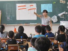 最初の「影絵教室」では、代表児童と先生も参加し、手影絵(フクロウ)に挑戦しました。天気のいい日は、太陽の影で手影絵ができるということですので、是非試してほしいと思います。