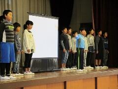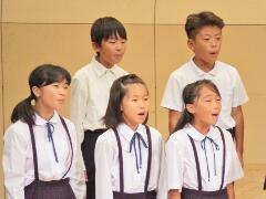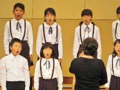 今日は、清掃ボランティアの皆様が、給食を食べにいらして下さいました。そこで、昼休み、6年生が校外学習で留守ですが、頑張って合唱を発表しました。4年生と5年生19名しかいませんでしたが、さすが地区音楽祭最優秀賞に輝いた合唱部。立派に歌うことができました。南っ子の頑張る力を発揮してボランティアの皆様に真心を届けることができました。 (担当:鈴木さ)