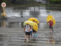 台風通過後も、河川の増水や吹き返しによる強風等の危険もありますので、子どもたちの不要な外出は控えるようご指導よろしくお願いします。