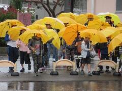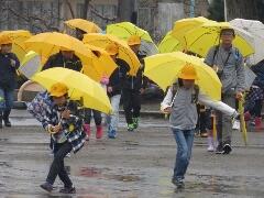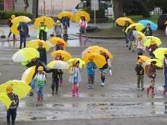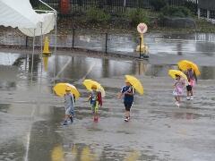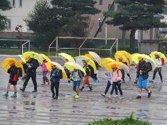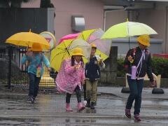 『予報どおり雨ですが・・・子どもたちは元気です!』
