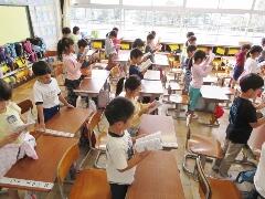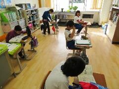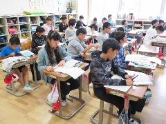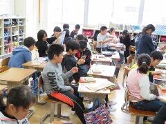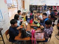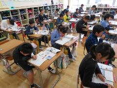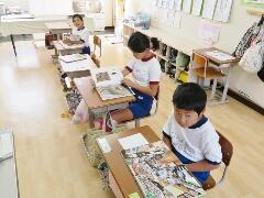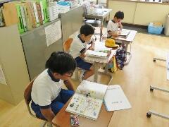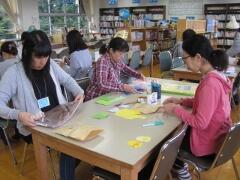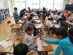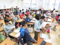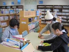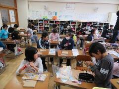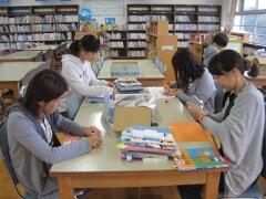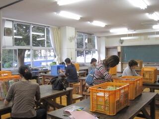 本棚の整理や学級文庫の修理、読書の実作り、袋作りをしていただきました。ありがとうございました。 (担当:内山)