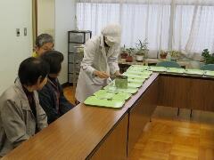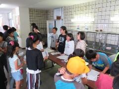 集荷場になすが集められてから漬物になって、出荷されるまでを詳しく学んできました。雨天で気温も低い中でも、子どもたちは一生懸命聞いた話をメモしていました。また、気になることは、積極的に質問を解決していました。