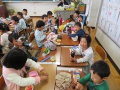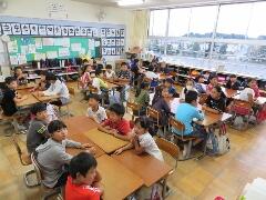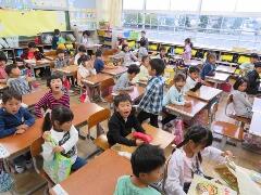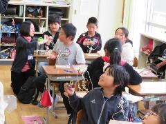 本日初めての試みとして、担当者と清掃ボランティアの皆様との給食の会食(試食)を実施いたしました。同じ釜の飯を食べながら、本校の児童の清掃活動について意見交換をいたしました。ありがとうございました。