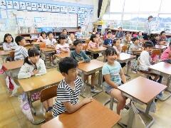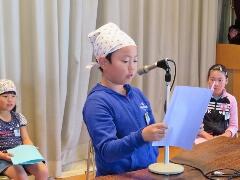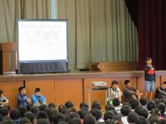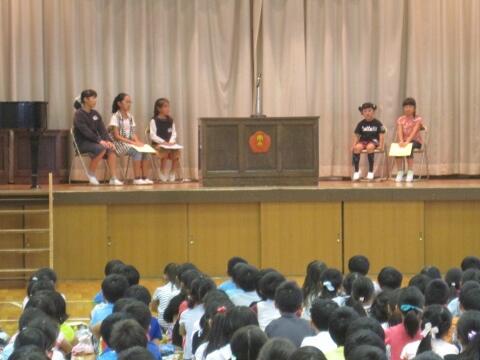 児童発表、教頭先生の話で第2学期が始まりました。保護者の皆様・地域の皆様のご協力・ご支援を引き続きお願いいたします。