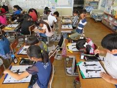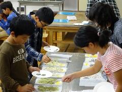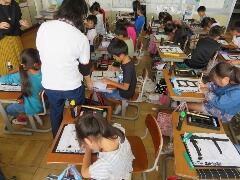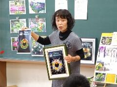 11月の作品展に向けて、押し花を並べてクリスマスリースをデザインしました。ボランティアの小林雅子先生がたくさん押し花を用意してくださり、色とりどりのかわいらしい押し花を見て、みんな驚いていました。お花のバイキングにわくわくする子どもたち。自分が選んだ花の形や色を組み合わせて、リースの形に並べていきました。普段見たことのない押し花に感動し、講師の先生にたくさんほめられて、どの子も大満足な作品が仕上がりました。