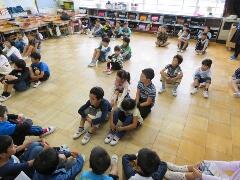 1学期最後の共遊でした。1・2年生は「へびおに」、3年生は「わにわにパニック」、4・5・6年生は「ドッチボール」でした。それぞれ工夫して楽しく遊んでいました。