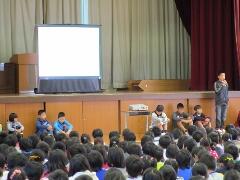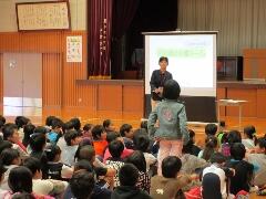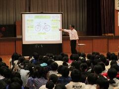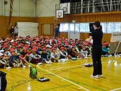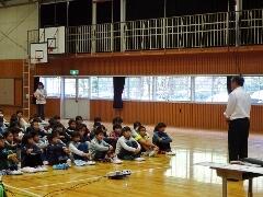 本日、警察署のマロニエ号の方にお越しいただき、交通安全教室を行いました。上学年と下学年に分かれ、それぞれに合った内容で講話を聞いたり映像を見たりしました。交通ルールや自転車の正しい乗り方などを再確認し、子どもたちは安全に対する意識をさらに高めることができました。