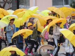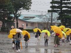 『傘が大活躍です・・・水たまりが大好きな子も・