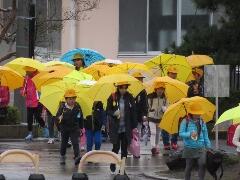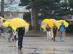 雨の登校でしたが、今朝は2年3組の児童が中心となって元気な声で「あいさつ運動」を展開しました。ご苦労様でした。