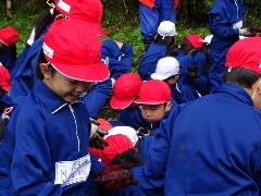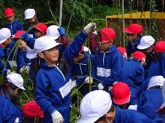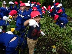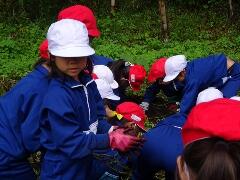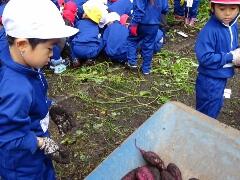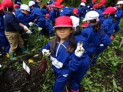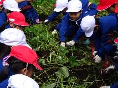 ボランティアの福島さんと一緒に自分たちで育てたサツマイモを収穫しました。