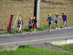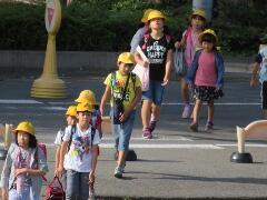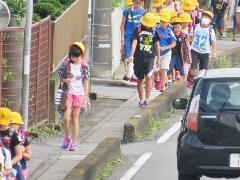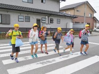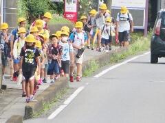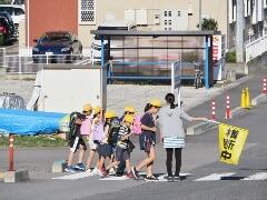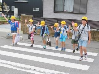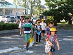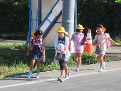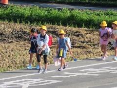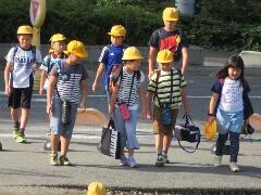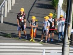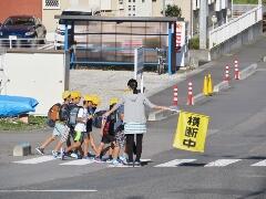 元気な朝のあいさつが聞こえてきそうなくらい・・・横断のマナーもしっかりできていました。一列励行も、バッチリです。南小の児童のマナーアップの模範でした。