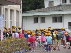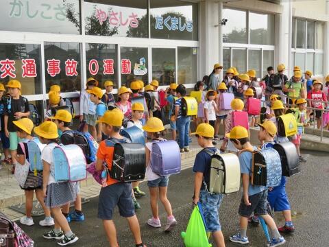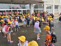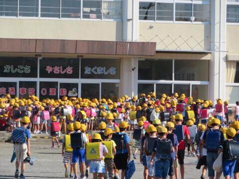 今日の登校は、警報の影響でちょうど一斉に登校班が重なりました。これからも、朝Jアラートの警報があった場合はご家庭での判断をお願いいたします。児童には、本日の運動会全体練習で「登下校時の対応」について再度話をします。まず、『大切な命を守ることが最優先です。』今朝も、児童の安全確保のために学区内を職員が巡回しました。今後も、保護者の皆さまのご協力をよろしくお願いいたします。