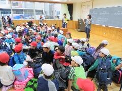 タイミングよく、今日はあいさつ集会委員会と市のあいさつ巡回運動の同時展開となりました。市の少年指導員の方々から、本校児童のあいさつの様子が清々しくよい姿勢であるとお褒めの言葉をいただきました。