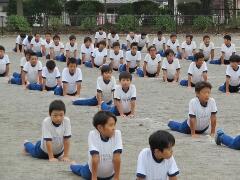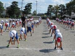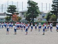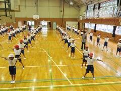 『高学年の練習は、毎回ラジオ体操から開始します。』