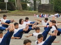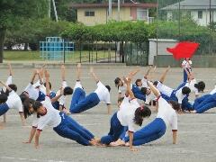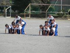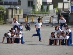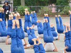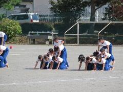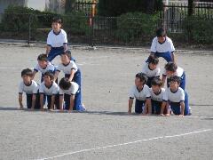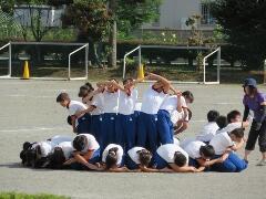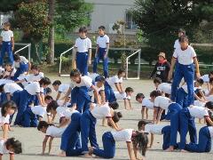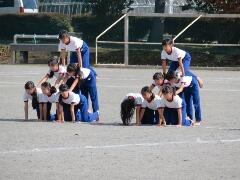 校庭での組み体操の練習を、遠目から見てみました。「よい姿勢」が際立ってきました。