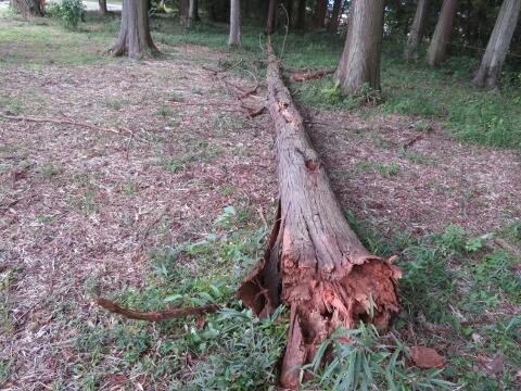 台風による強風により倒木が一本ありました。市教育委員会に昨日のうちに知らせました。