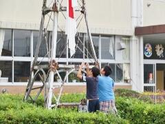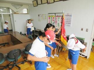 『校旗・優勝旗の準備』