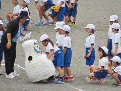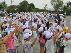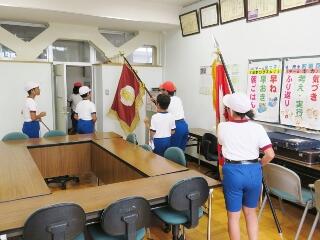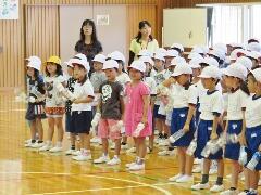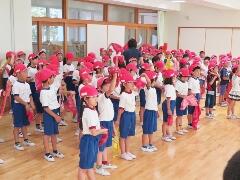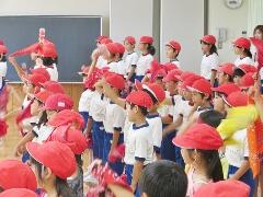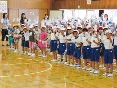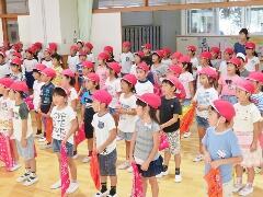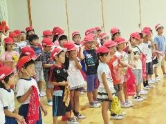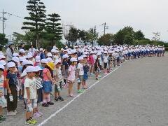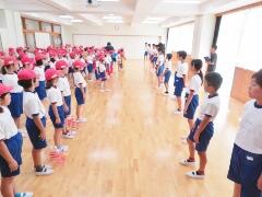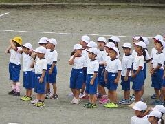 今日から9月に入りましたが、これからまだまだ暑い日が続きます。熱中症対策の水分補給よろしくお願いいたします。運動会の練習も始まります。「早ね、早おき、朝ごはん」を愛言葉に生活をしましょう。