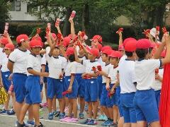 5年生も応援してくれて、1年生・2年生元気な応援でした。応援団員、ご苦労様でした。