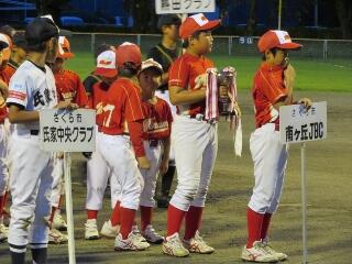 雷雨のため順延となったさくら市学童ナイター野球大会(市教委、市体育協会、市ロータリークラブ共催)が,8月20日(日)18:30に市総合公園野球場で開催されました。最後までやり通すことができた6年生にとって,現チームでの最後の大会です。6年生は,最後の大会にふさわしく、楽しく,真剣に試合を行っていました。改めて,指導スタッフや家族の皆さんもこれまで大変お疲れ様でした。