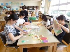 本棚の整理、読書の実作り、袋作り、本の修理をしていただきました。
