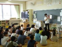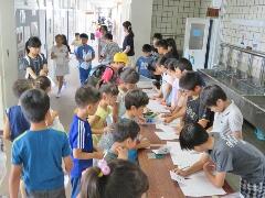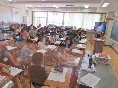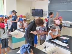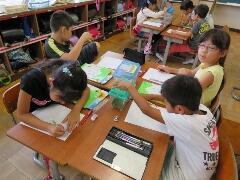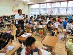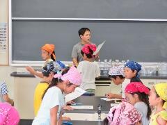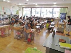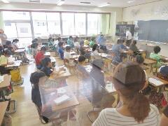7月7日、30度を超える暑い日でした。4年生は社会科の校外学習で、川岸にある「水処理センター」に徒歩で行ってきました。 最初は濁っていた水が、微生物が汚れを食べることできれいになっていく様子を見て、子どもたちは感動していました。