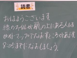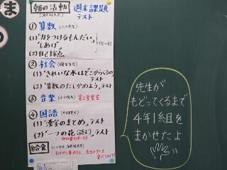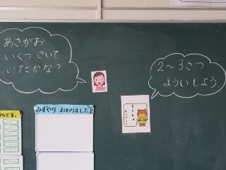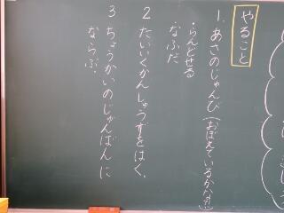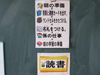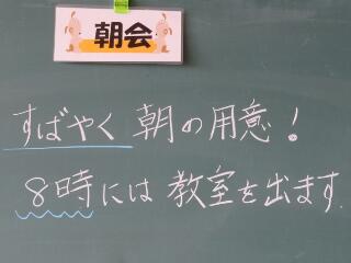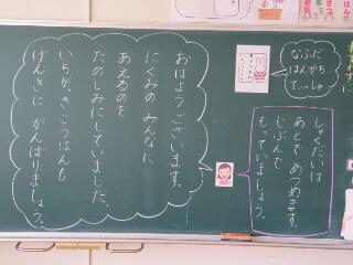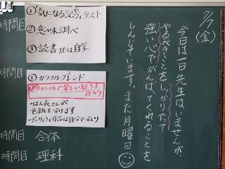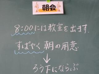 児童が、安心して取り組めるように黒板に予定が出ています。