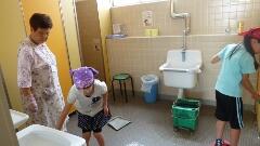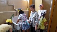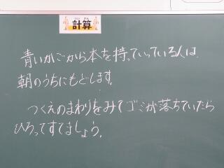 昨日は、ボランティアさんの活動の様子を見学に来られた方が40名ほどいらっしゃる中での清掃の時間でした。子どもたちは、一生懸命お掃除に取り組みながら、元気にあいさつもできていて大変立派でした。
