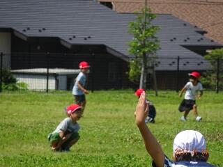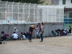 4年生は、「めだまやき」という遊びを校庭で楽しそうに行っていました。