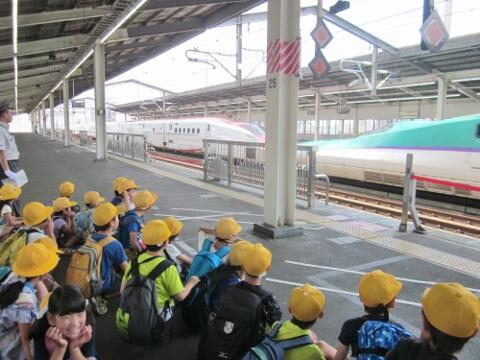 宇都宮駅では、日光線や新幹線ホームを案内していただきました。新幹線は時速320キロで走っているという話の直後に、目の前を函館行きの新幹線が通過して行きました。時速320キロの迫力を目の当たりにし、子供たちから拍手と歓声があがっていました。 おうちの方に頼まれた品物をダイソーで見つけるのは大変でしたが、みんなしっかり買うことができ、満足そうでした。 (担当:三尾谷学年主任)