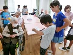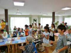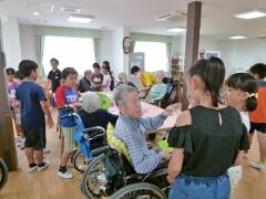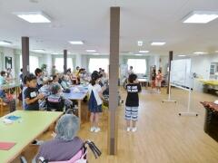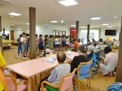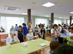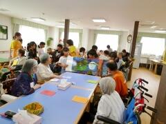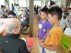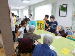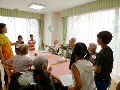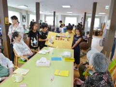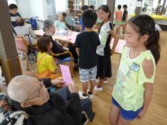 交流の中で、座っている相手に対して膝を折り、目線を合わせて笑顔でお話する児童の姿は輝いていました。最初は戸惑っていた児童も、最終的にはたくさんお話することができたので、良い経験ができました。次回の訪問(11月)を児童も高齢者の方も楽しみにしているようです。 (担当:本郷)