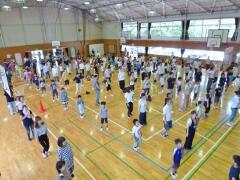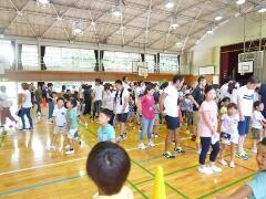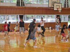 3年生の親子学習会は、「しっぽ取りゲーム」を行いました。各クラスごとに、「子どもVS親」での勝負。もちろん、子どもたちの圧勝でした。暑い体育館で、熱い闘いが繰り広げられました。