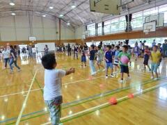 「子どもチーム」対「親チーム」で戦い、白熱した試合となりました。いつものドッジボールと違って、おうちの方が相手なので子どもたちはさらに燃えたようです!!!