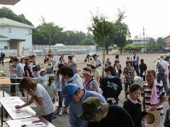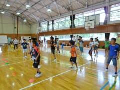 3時間目に親子学習会を行いました。各クラスごと男女に分かれ、親と子でドッジビーで対決しました。チームによっては子どもが親に勝つところもあり、歓声が上がっていました。
