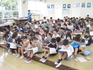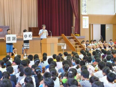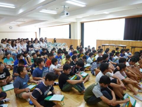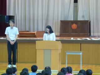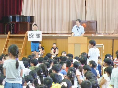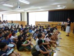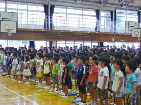 「自分のゆめにチャレンジ!」「毎日お手伝い!」「自分の命は、自分で守る。」について話をしました。夏休みにしかできないことにチャレンジしてください。