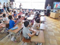 スマホを操作したことがあると答えた児童が多く、子どもたちにとってもスマホは身近な物となっているようです。便利な反面、友達とのトラブルにつながったり、知らない人に個人情報を知られてしまったりする危険があることを知ったようです。一人一人、集中して話を聞いていました。