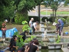 伸びた草や木々の枝を刈っていただいたり、サンクガーデンの池の汚れをとっていただいたりしました。校外の環境がとてもきれいになりました。ありがとうございます。