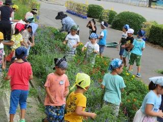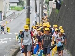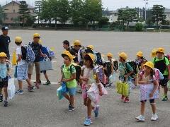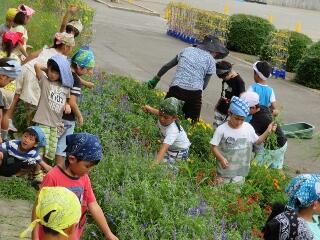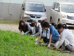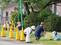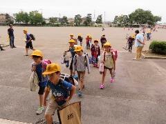 暑い中、先生と一緒に一生懸命に草むしりをしていました。この時期になると、一年生も清掃の時間立派な戦力です。