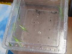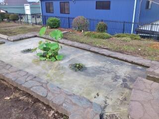 【土曜日の奉仕作業に備えて、金魚が仮プールに移動中!】